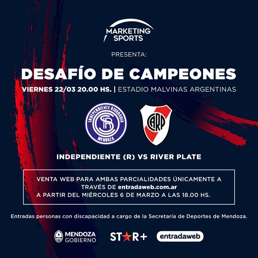 Por el «Desafío de Campeones», La Banda se enfrentará ante la Lepra mendocina el próximo viernes 22 de marzo desde las 20 (hora de Argentina) en el estadio Malvinas Argentinas de Mendoza. El mismo será transmitido exclusivamente por el servicio de streaming Star+.