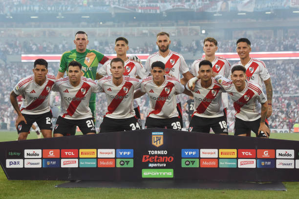 Franco Armani; Gonzalo Montiel, Germán Pezzella, Lucas Martínez Quarta, Marcos Acuña; Enzo Pérez, Rodrigo Aliendro, Maximiliano Meza, Franco Mastantuono; Facundo Colidio y Miguel Borja.