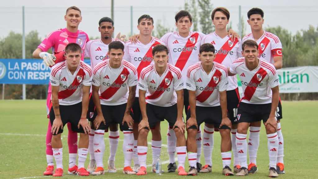 Los once titulares de River: Lucas Lavagnino; Matías Unyicio, Juan Miretti, Felipe Álvarez (C), Lisandro Bajú; Agustín De La Cuesta; Jonás Luna, Giorgio Costantini, Cristian Jaime; Bautista Dadín y Joaquín Freitas. DT: Marcelo Escudero.